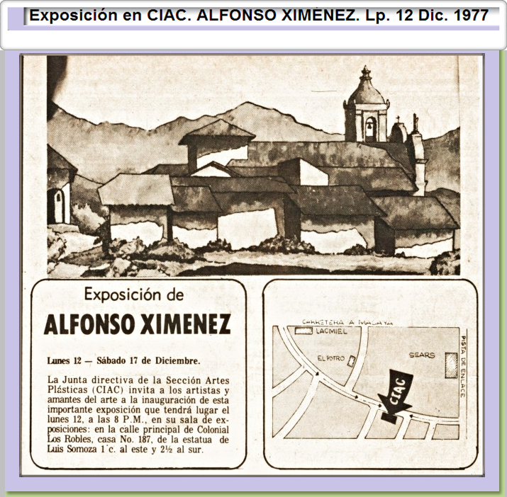 EXPOSICIÓN EN CIAC. ALFONSO XIMÉNEZ. Lp. 12 Dic. 1977.